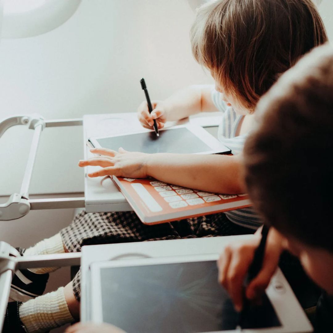 Децата практикуват с екран и писалка, без достъп до неподходящо съдържание.