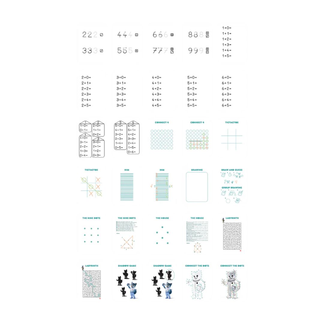 Развийте уменията на вашето дете чрез игра! Комплектът KIDYDRAW-MINI – Игри и Образование предлага карти за упражнения по писане на букви, числа с прости изчисления и забавни игри за индивидуални или групови занимания. Забавен начин за развиване на умения, докато детето се забавлява! Съвместими с таблетите KIDYDRAW-MINI.