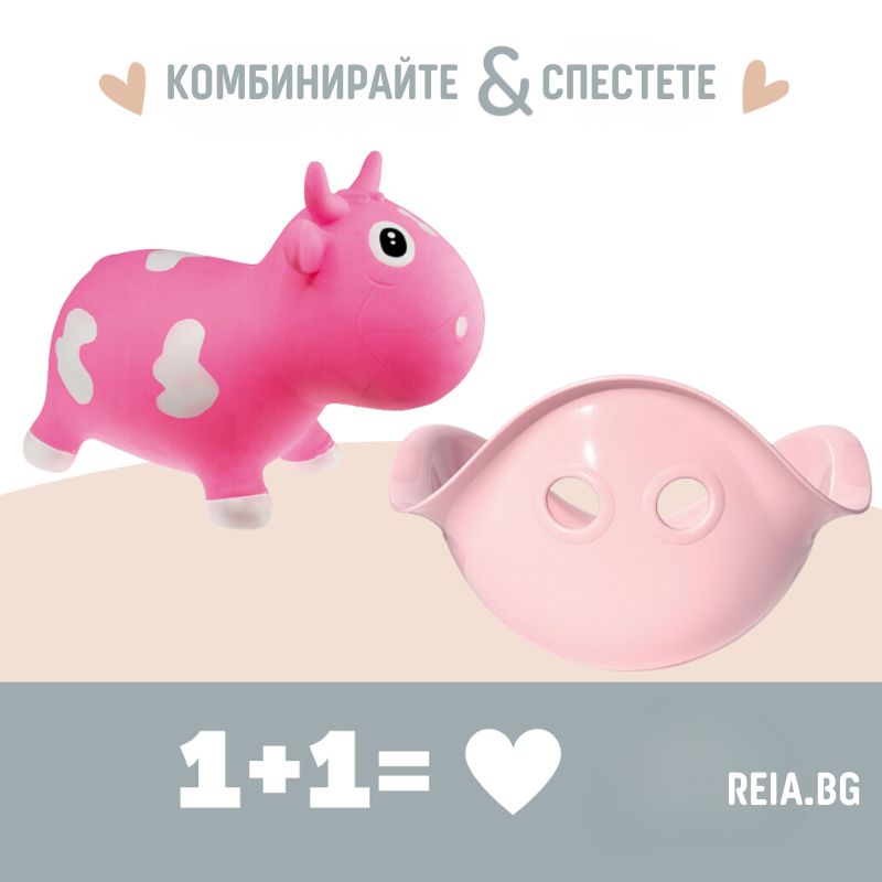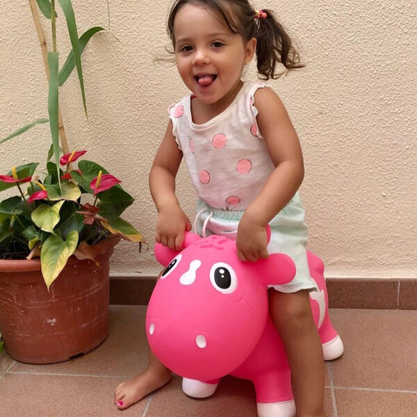 Кравичката Bella Малчуганите я обожават и инстинктивно знаят как да я използват. Когато не подскачат с нея, тя се превръща в техния най-добър приятел в игрите. Изработена е от висококачествена пластмаса, без съдържание на BPA и фталати (BPA and phthalate free). Има меки рогца и ушички, които детето лесно „захваща“, което му помага да се държи здраво и да се чувства в безопасност.