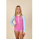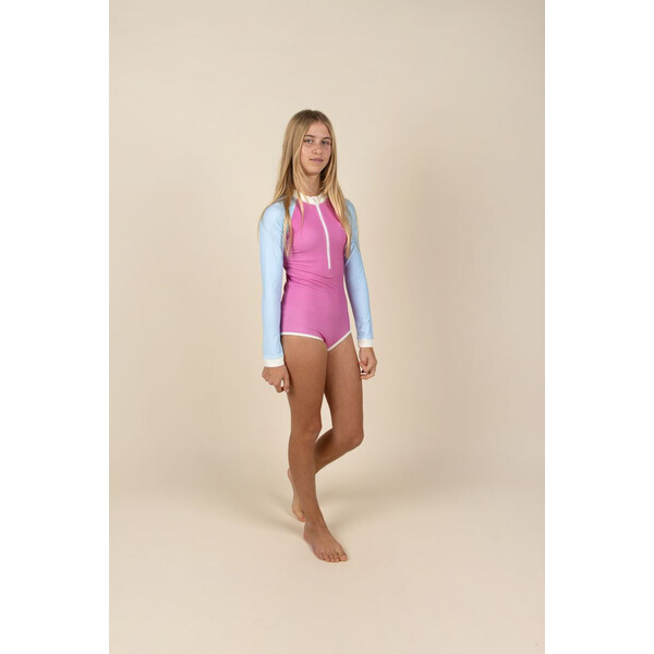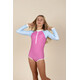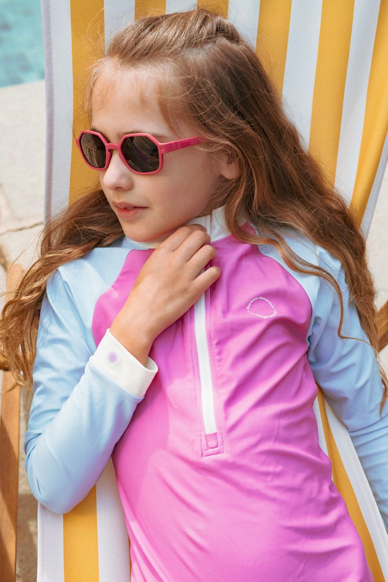 Целият бански за момичета от колекция Iconik съчетава модерен дизайн, удобство и висока слънцезащита, за да осигури спокойствие и комфорт по време на игра на плажа, басейна или на открито. Подходящ е за момичета на възраст от 4 до 12 години и се предлага в 4 размера.