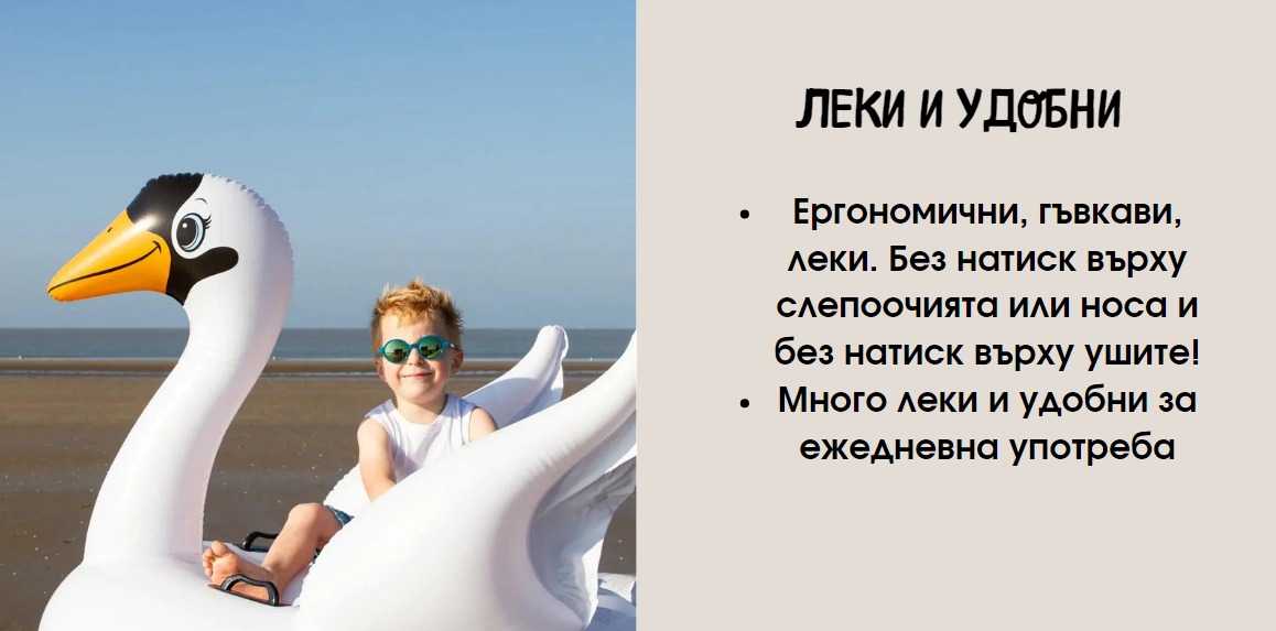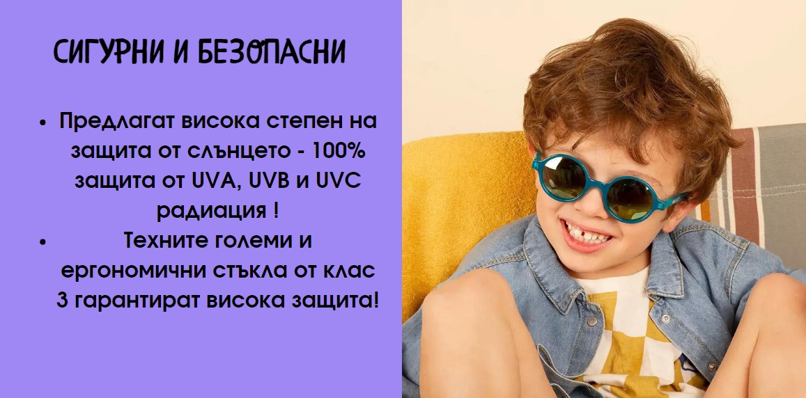 Предназначени за деца, които са постоянно в движение, леките, издръжливи и гъвкави материали са идеални за интензивните им движения. Добре познатите поликарбонатни стъкла предлагат перфектна защита от категория 3, полароидни, със 100% защита от UVA лъчи, UVB правят очилата идеалната бариера между очите на децата Ви и слънцето!