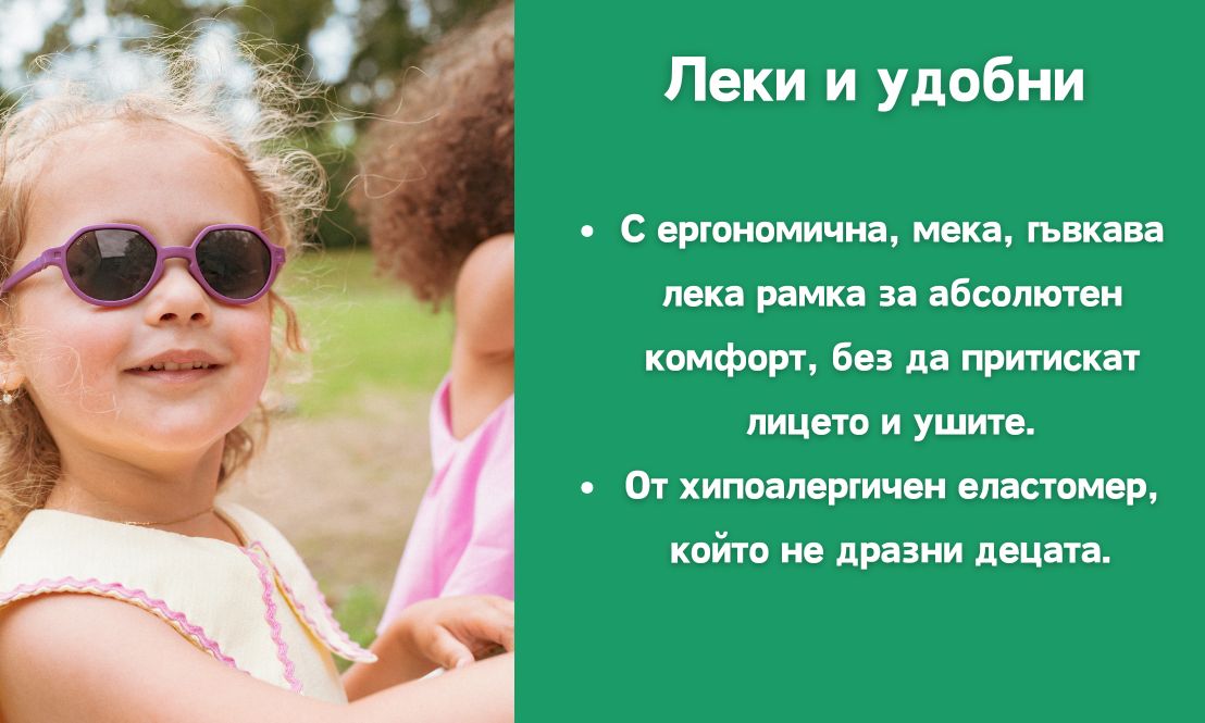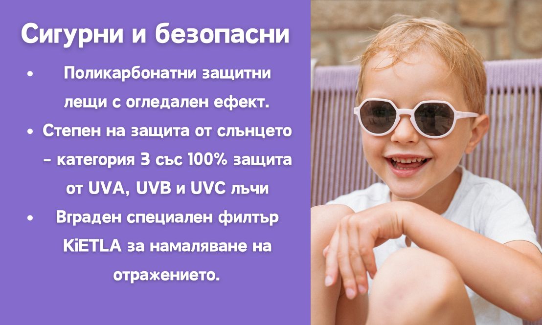 Стъклата със защита от 3-та категория гарантират 100% защита от UVA, UVB и UVC лъчение, осигурявайки надеждна грижа за детските очи.