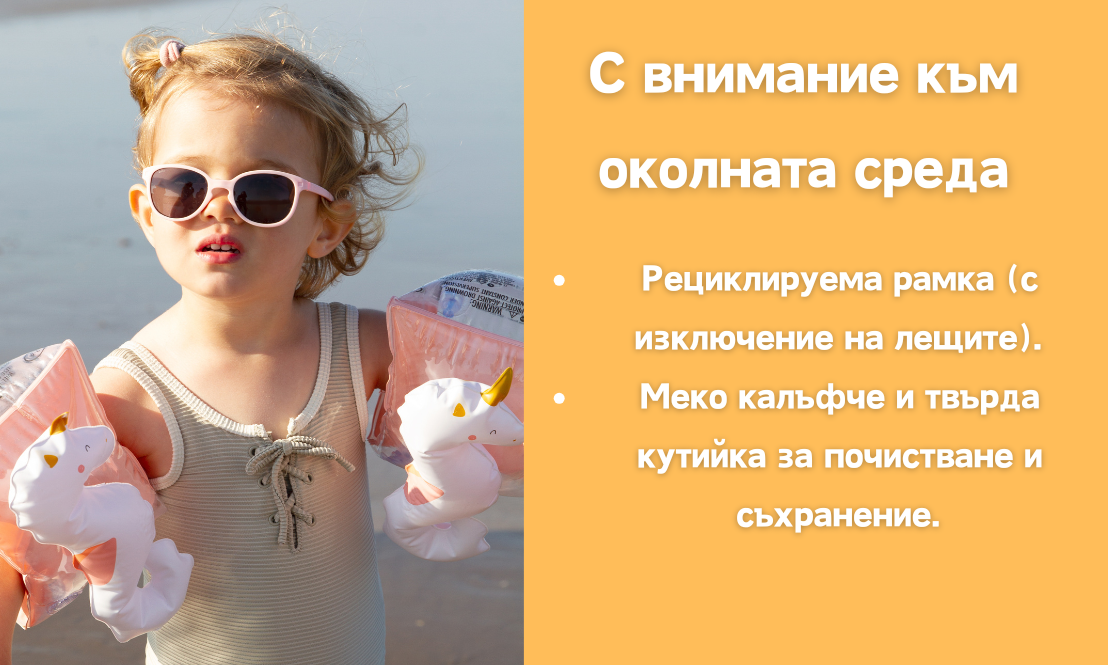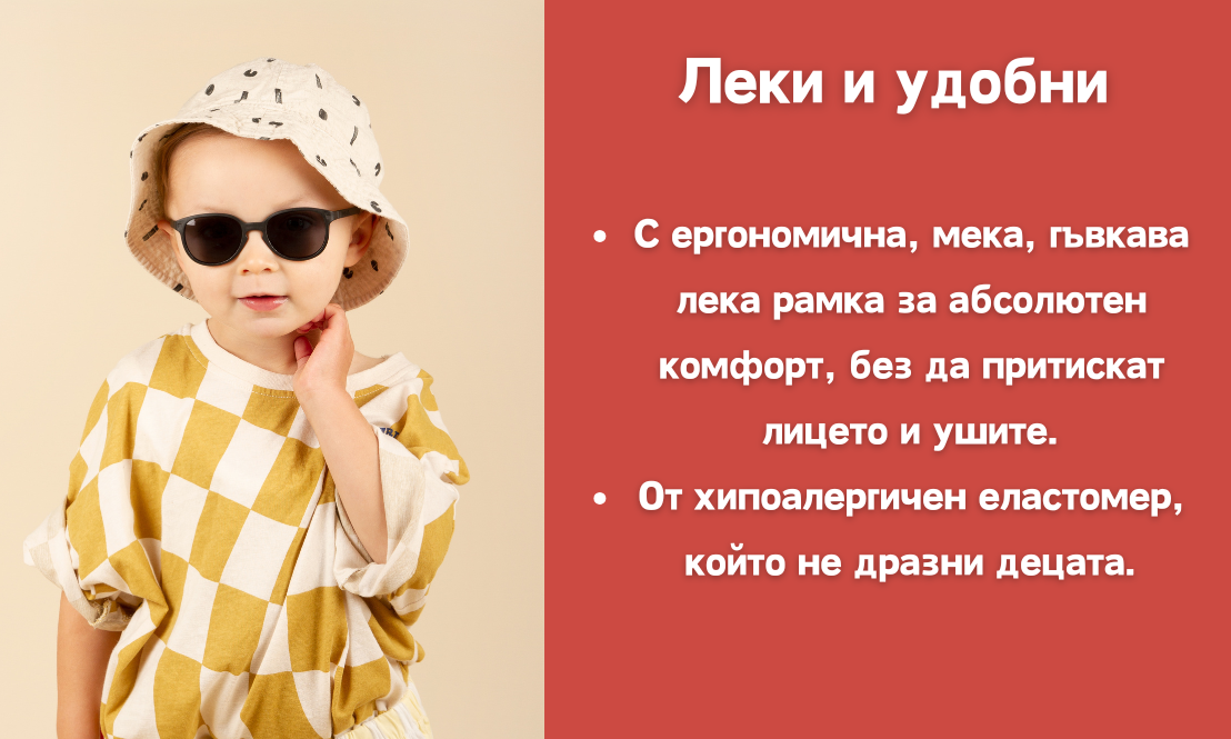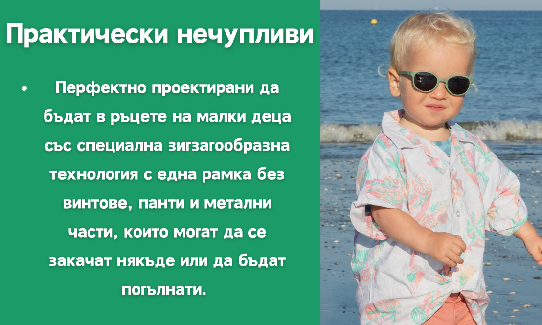 - Не забравяйте, че регулируемата връзка на очилата за възраст 0–4 години ще помогне да ги задържите на място.