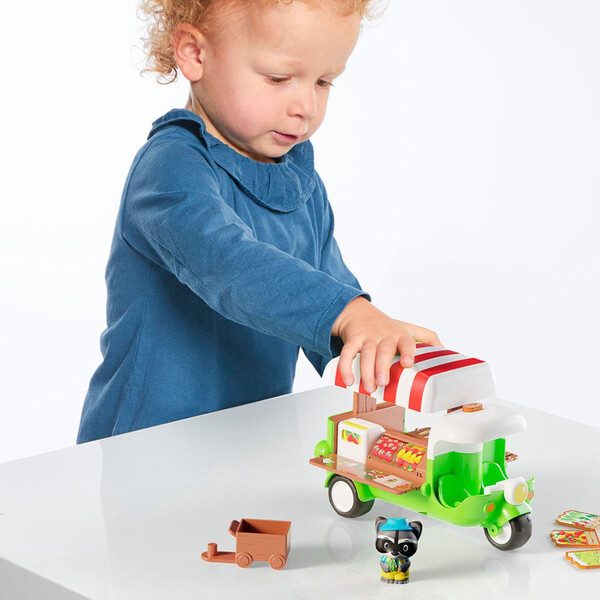 Превърнете ученето в игра! Камионът учи детето на важността на здравословното хранене. С функционална POP везна и въртящ се панел, детето научава за плодовете и зеленчуците, как се пазарува и плаща, и развива важни житейски умения.
