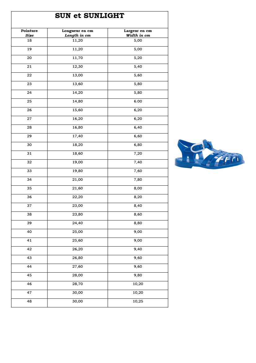 Сандалите са направени от мека, гъвкава гума и са с каишки. Имат подметка с малки "бутони", закръглени и затворени са при пръстите и са плетени, за да може въздуха свободно да преминава и краката да дишат!