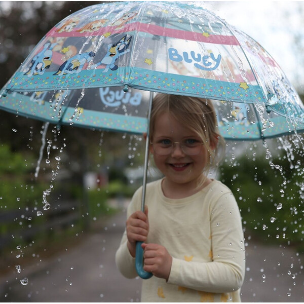 Със своите забавни илюстрации от света на Bluey, този весел детски чадър, ще освежи всеки мрачен и дъждовен ден.