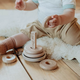 Дървените играчки са по-трайни, устойчиви и екологични. С подреждането на пирамидата детето развива концентрацията си и своите двигателни умения.