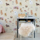Този весел тапет превръща детската стая в място за игра, въображение и безкрайни истории.