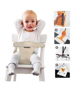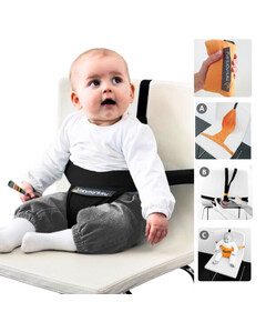 Сбруята е лесен за употреба уред, с който можете да превърнете всеки стол в детски такъв за хранене в рамките на минута. Много удобен! Когато сте на път, сложете го във Вашата чанта и го използвайте навсякъде и по всяко време. Подходящ е за всеки стол, като е използван дори в самолет, на колички за пазаруване и някои видове шейни.