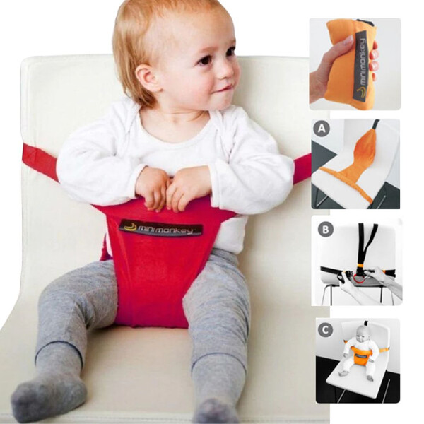Mini Monkey: Преносим детски стол за хранене ( сбруя) 6+ месеца в калъф – Red