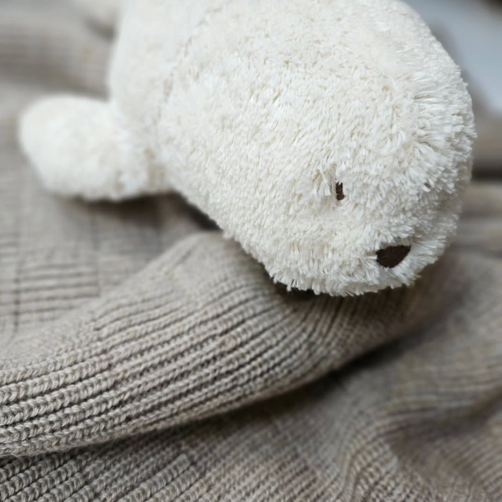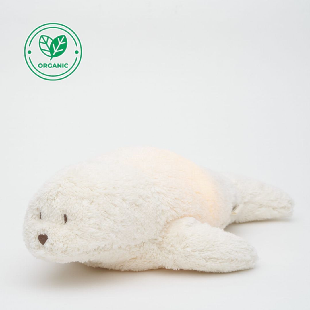 Плюшените тюленчета от колекцията MOONIE ORGANIC са направени от органичен памук притежаващ сертификат  GOTS.