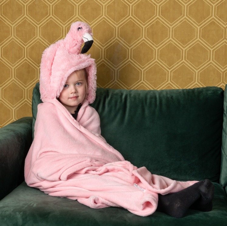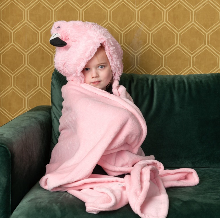 Noxxiez Одеяло с качулка и джобчета за ръце във формата на животно - Фламинго
