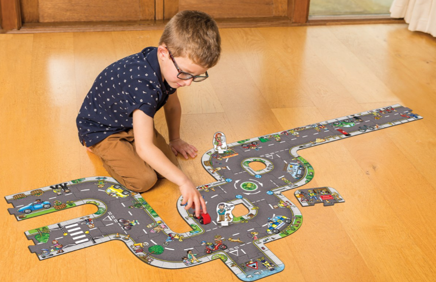 Весел пъзел, който учи децата на пътна безопасност! Създайте различни маршрути, като използвате парчетата от пъзела.