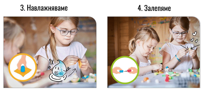 - Лесни за изработка – слепват се с малко вода и включената в комплекта гъбка.