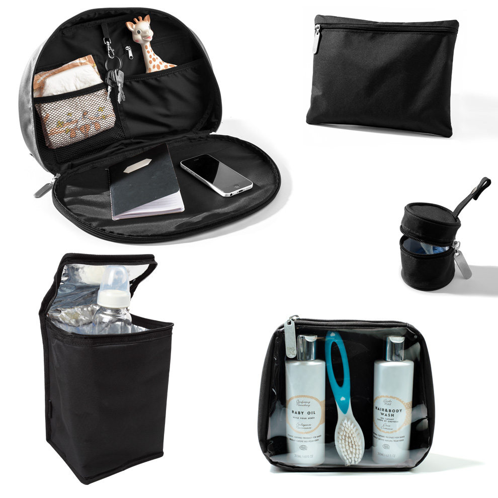 Има много джобове и допълнителни несесери с много приложени, като специална термо чанта за храна и калъф за биберони.