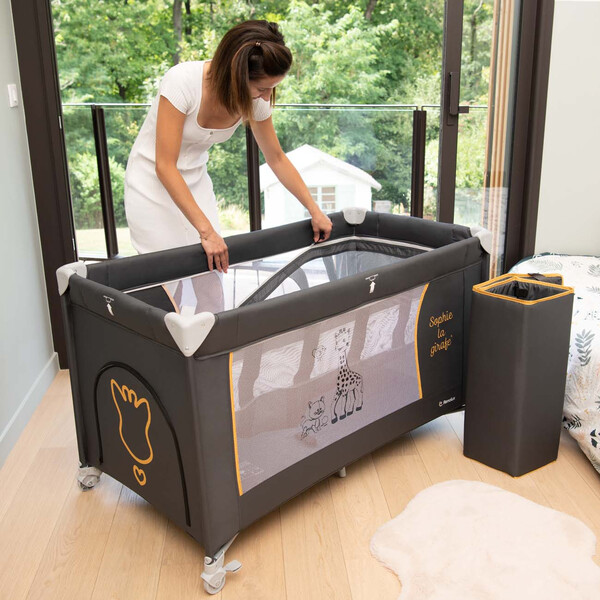 "Renolux" и Софи Жирафчето създадоха най-забавната, практична и удобна сгъваема кошара, която е на две нива SOPHIE SUNRISE, с универсални цветове, които пасват на всеки интериор