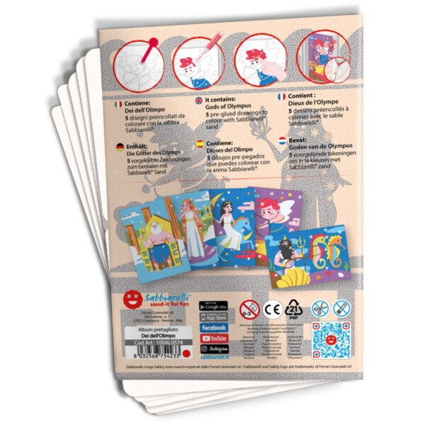Няма нужда от ножици и лепило! Премахвайки хартията от листовете, залепващата повърхност остава оцветена с пясък.