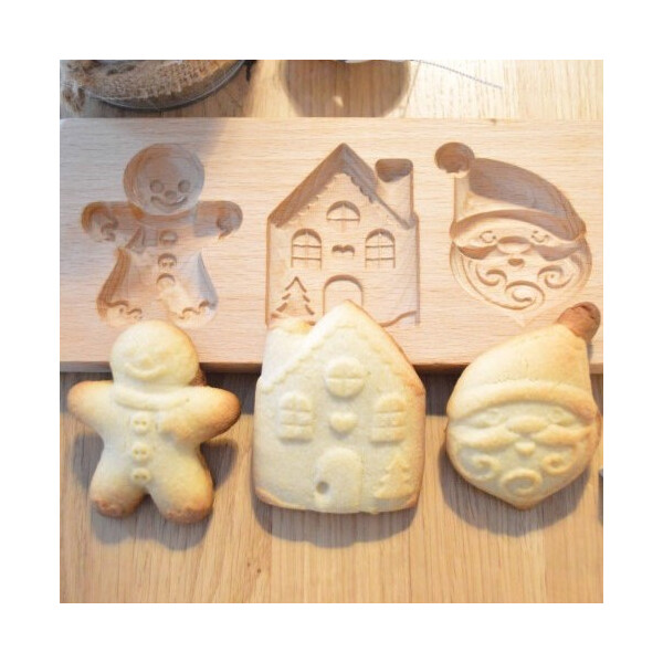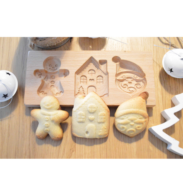 Дървена форма за готвене от 3 традиционни дизайна : джинджифилово човече, Дядо Коледа и къщичка, ще ви помогне да направите най-вкусните сладкиши