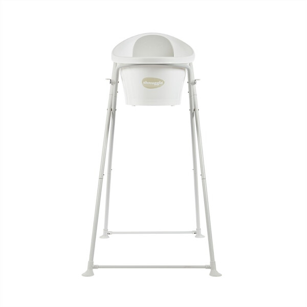 Сгъваемата стойка Shnuggle идеално допълва ваната Shnuggle! Тя повдига Вашето бебе на около 76 см от пода до кръста ви. По този начин не се навеждате и улеснявате самостоятелното къпане, без причинена болка в гърба след това.