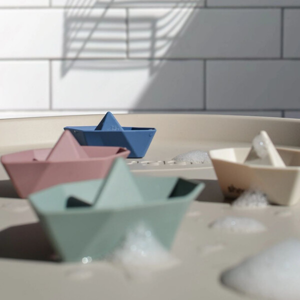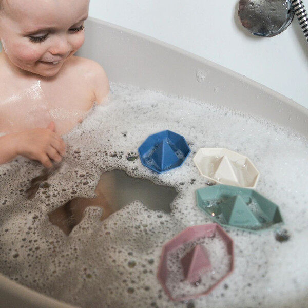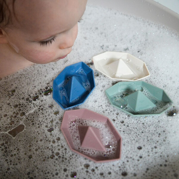 Къпането става истинско приключение с този цветен комплект от 4 силиконови лодки! Те са създадени за малките ръчички и подпомагат развитието на фината моторика и координацията.