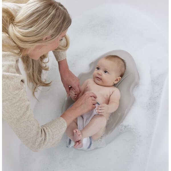 Подложката е специално проектирана, за да осигури стабилност, мекота и усещане за сигурност по време на баня. С нейния ергономичен, „прегръщащ“ дизайн бебето лежи удобно и спокойно, а родителите се чувстват уверени и спокойни.