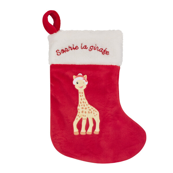 Супер сладко коледно чорапче, на което можете да видите усмихнатото и весело лице на любимото ни жирафче, което също носи коледна шапчица. Перфектно за гушкане или да го закачите около елхата!