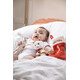 - Осезание - Лека, тя е перфектно адаптирана за малките ръчички на бебето, а дългите крака и шия я правят лесна за хващане. Нейната текстура наподобява човешката кожа, успокоява и предизвиква физиологични и емоционални реакции на бебето, които ще го спокоят.