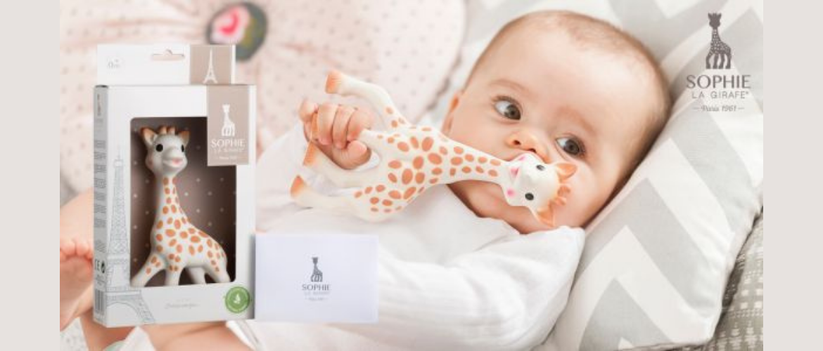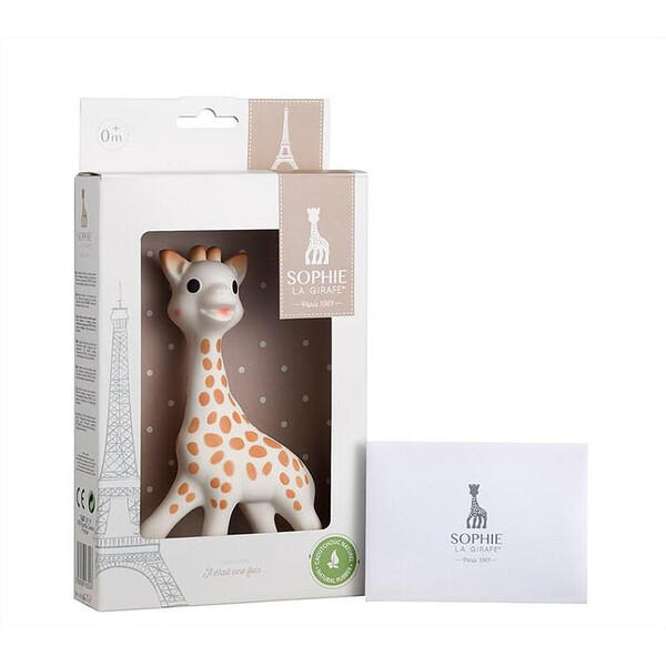 Пристига при Вас в атрактивна кутия с прозрачен прозорец, тя е изработена от 100% естествен каучук, хранителни бои и е напълно безвредна. Жирафчето Софи ще събуди всички сетива на вашето бебе: