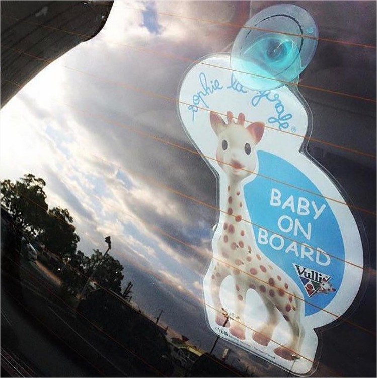 Знакът с любимата Софи се прикрепя лесно с вендуза от вътрешната страна на колата. Той е с красив дизайн и цветове, коитъо го правят лесно видим.