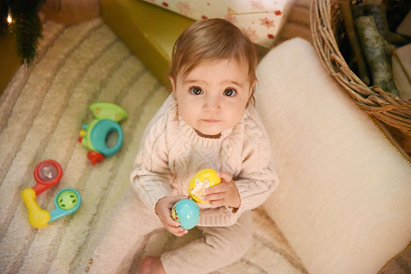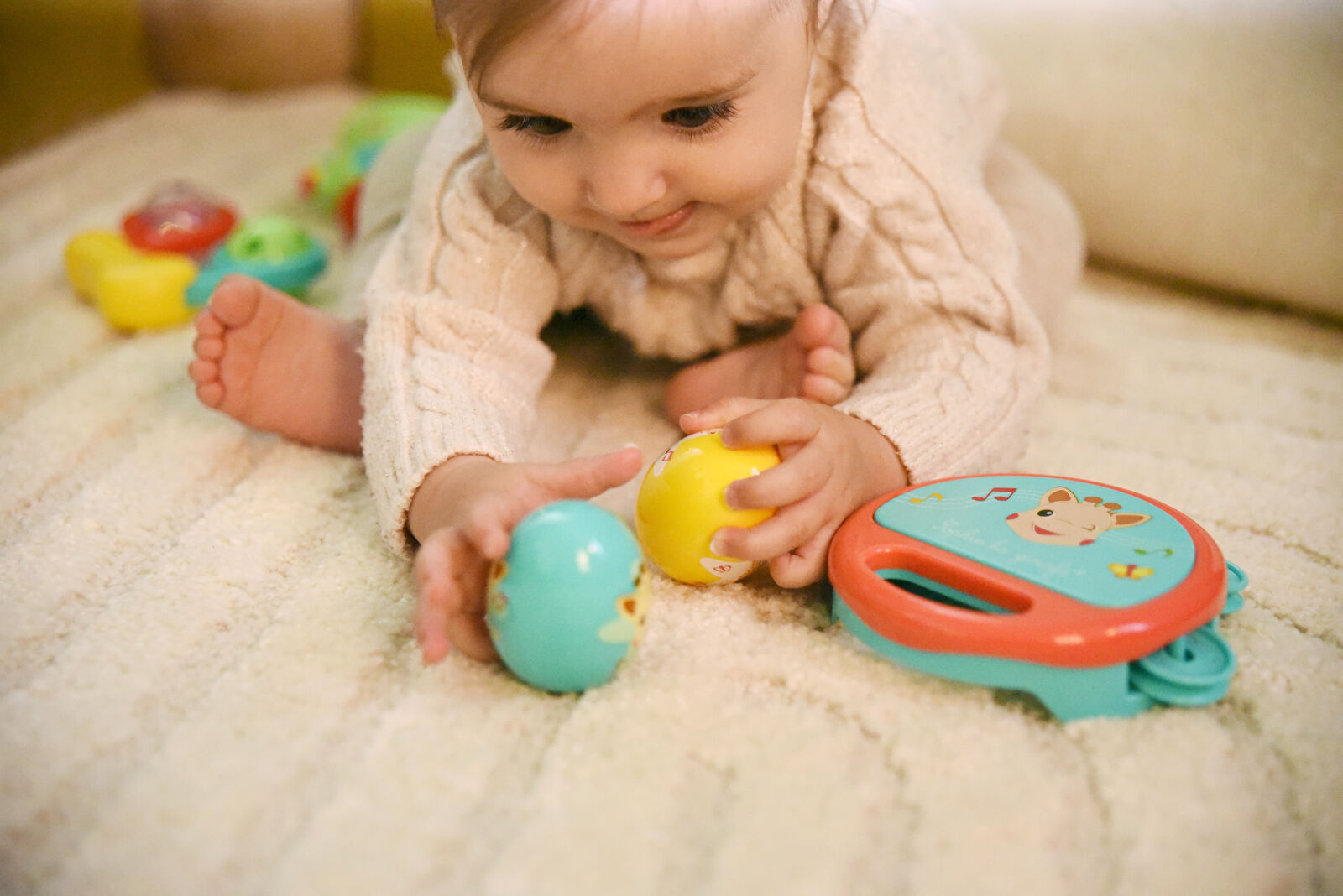 Докато бебето играе, то разпознава различни звуци, експериментира с ритми и развива своето музикално възприятие.