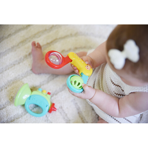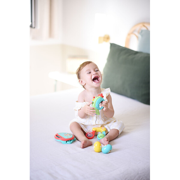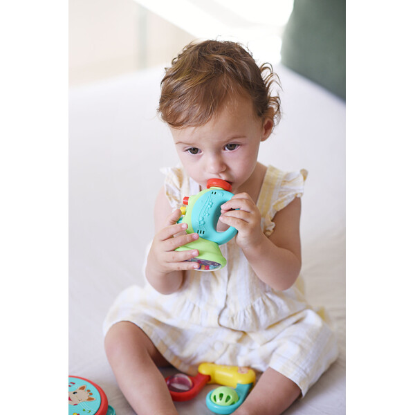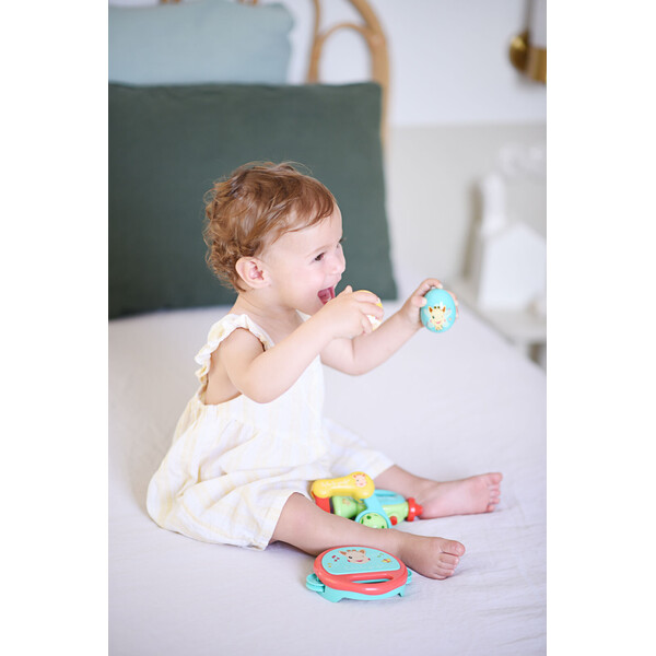 Ярките цветове привличат вниманието, звуците събуждат любопитството, а ергономичният дизайн помага на детето лесно да държи всеки инструмент, като така повишава увереността му.
