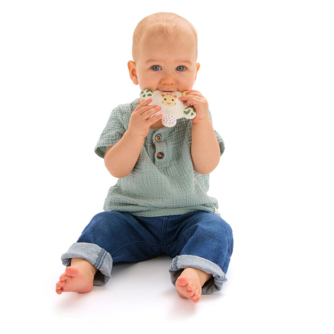 Нежно облекчение в периода на първите зъбки. Гризалката е изработена от 100% естествен каучук и осигурява безопасност, комфорт и забавление за бебето.