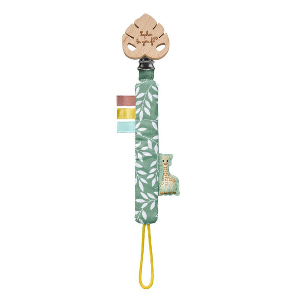 Клипсът за биберон на Жирафчето Софи е сладък и полезен помощник за всеки ден. Изработен от меки материи с ленти с различни текстури, той стимулира сетивата на бебето и осигурява приятно сензорно изживяване.