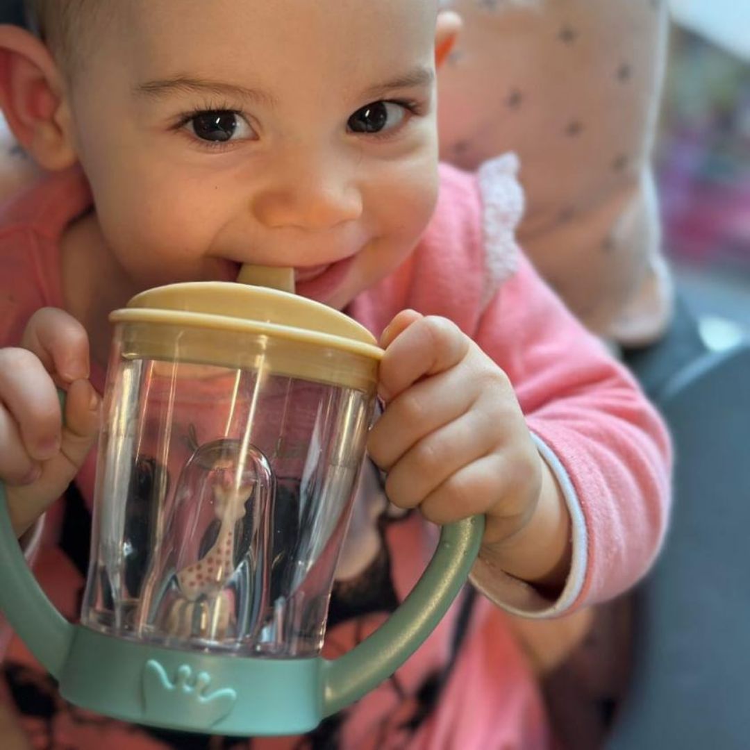 Практичен, безопасен и обичан комплект, който съчетава първата чашка на бебето с една от най-емблематичните бебешки играчки в света. ✨????