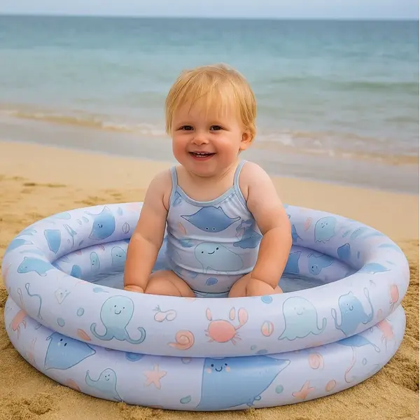 С диаметър 60 см и вместимост 15 литра, той се поставя и пълни лесно, като осигурява прохлада и забавление за най-малките. Дизайнът му е специално съобразен за бебета и малки деца до 1 година, като предлага стабилност и безопасност при употреба.