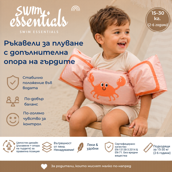 Swim Essentials: Ръкавели с допълнителна опора на гърдите за деца от 2 до 6 години - "Crab"