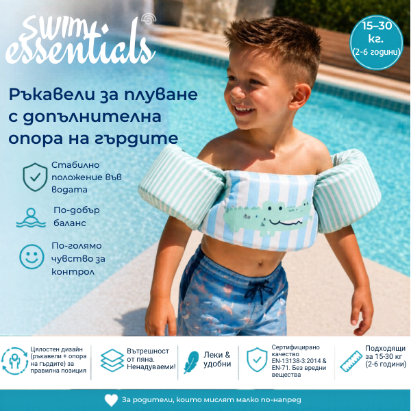 Ръкавелите с гръдна опора на Swim Essentials са проектирани да осигурят: