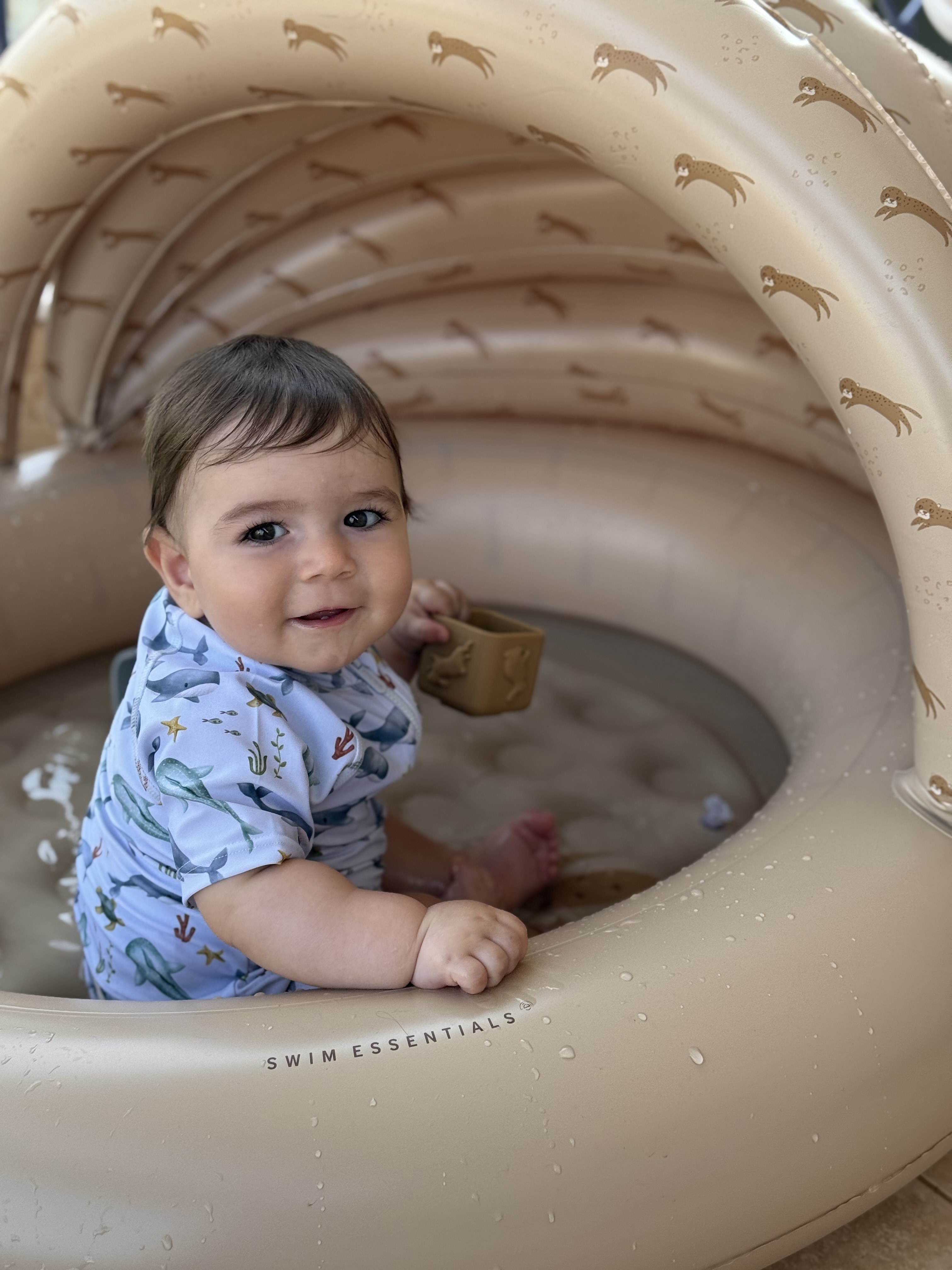 Открийте детския надуваем басейн със сенник Swim Essentials – must-have летен избор за всеки родител, който търси безопасна и комфортна водна игра за своето бебе.