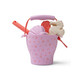 Комплектът включва 1 кофичка, 1 лопатка, 3 формички. Предлага се в мрежа за лесно транспортиране и почистване от пясък