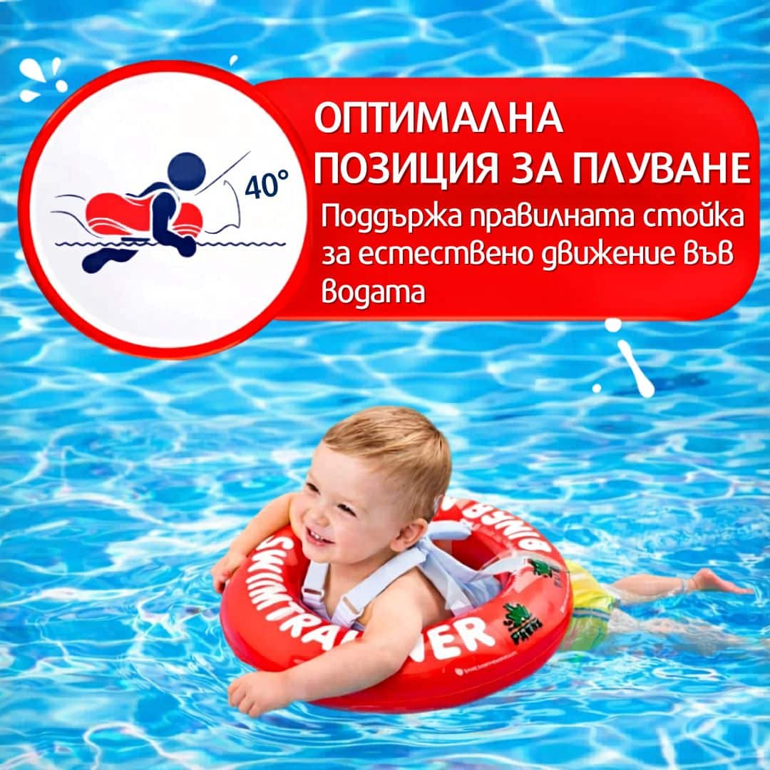 Swimtrainer поддържа тялото на детето под ъгъл от 40°, както при професионалните плувци.