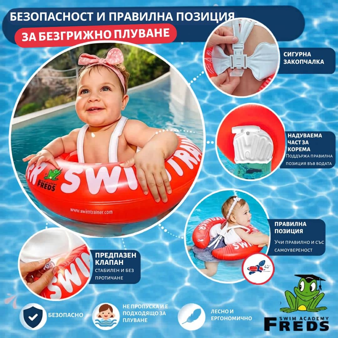 За разлика от обикновените спасителни жилетки, Swimtrainer поставя детето в идеалната позиция за плуване, като насърчава естественото движение и ранното обучение.