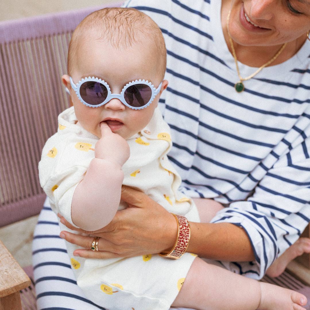 Моделът Fleur комбинира кръгла форма с фини „цветни“ детайли, които нежно обгръщат лицето на детето — деликатен, сладък и неустоим дизайн.