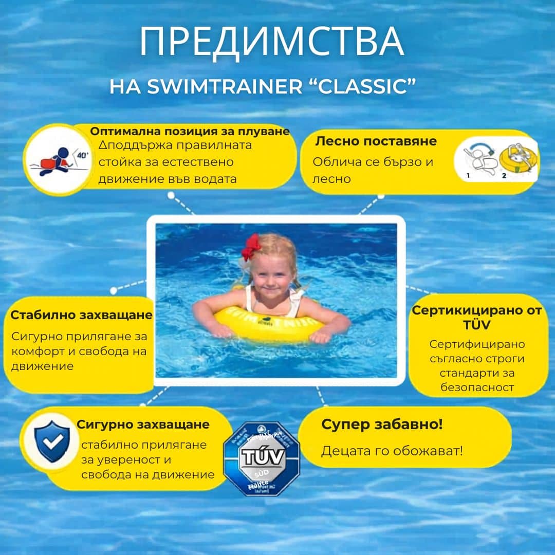С Swimtrainer децата бързо свикват с водата и придобиват умение, което ще ги съпътства цял живот.