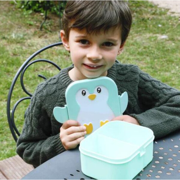 Кутията се отваря, като повдигнете малките крила на пингвинчето. Тя има преграда, така че храната да не се смесва и ароматите да останат непроменени.