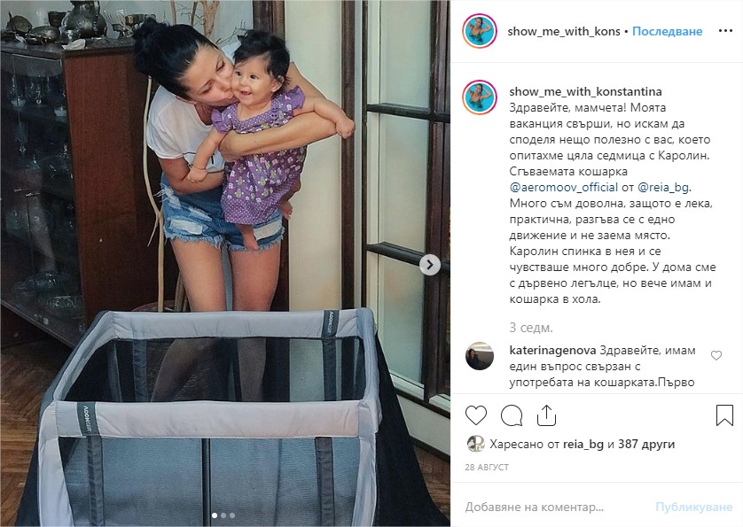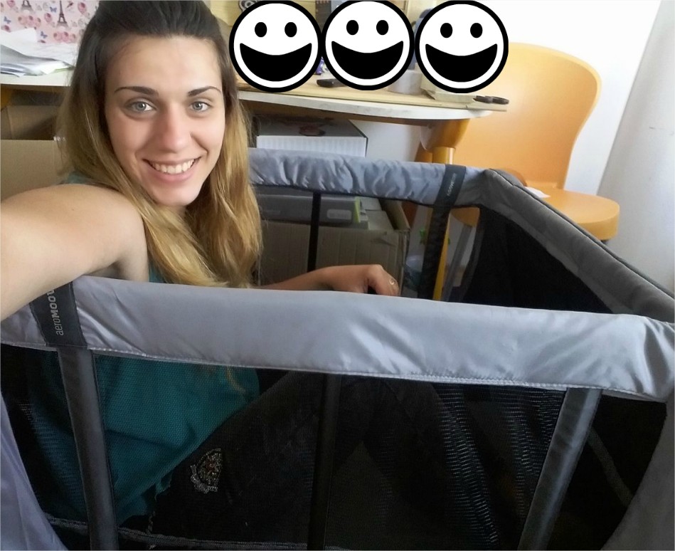 Нашата любима Константина от бебешкия блог Show Me With Konstantina и кошарата за сън и игра Aeromoov, на посещение при баба!