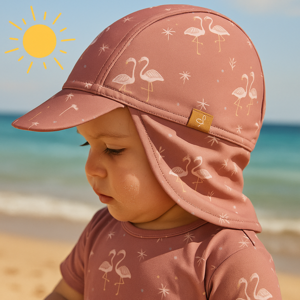 Осигурява пълна защита от слънцето с покритие за лице, уши и врат, като остава стабилна и удобна дори при най-активна игра.