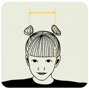 - Размер 2–4 години: 110 мм разстояние между слепоочията на детето.