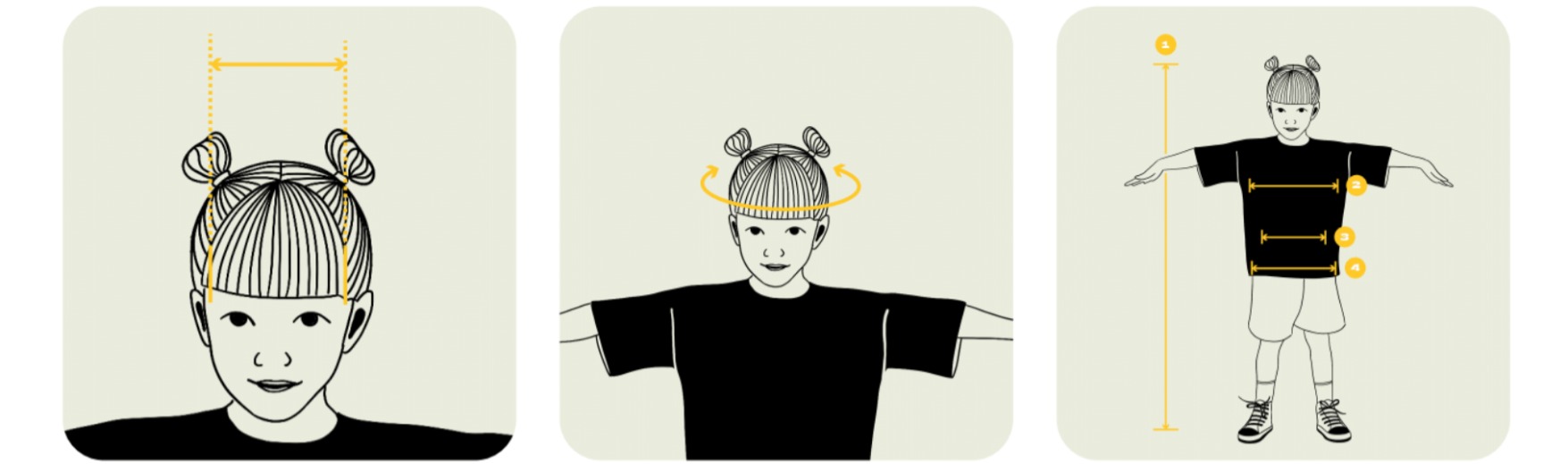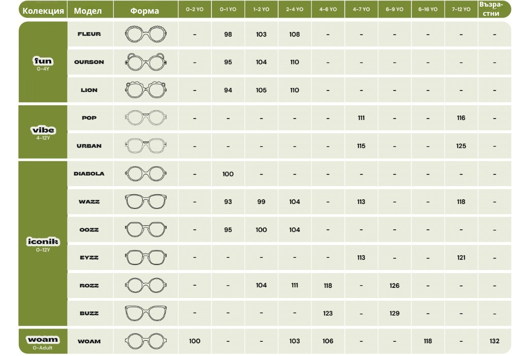 За да изберете правилните очила, можете да измерите ширината между слепоочията на вашето дете с метър. Ако е между два размера, ви препоръчваме да вземете по-големия.